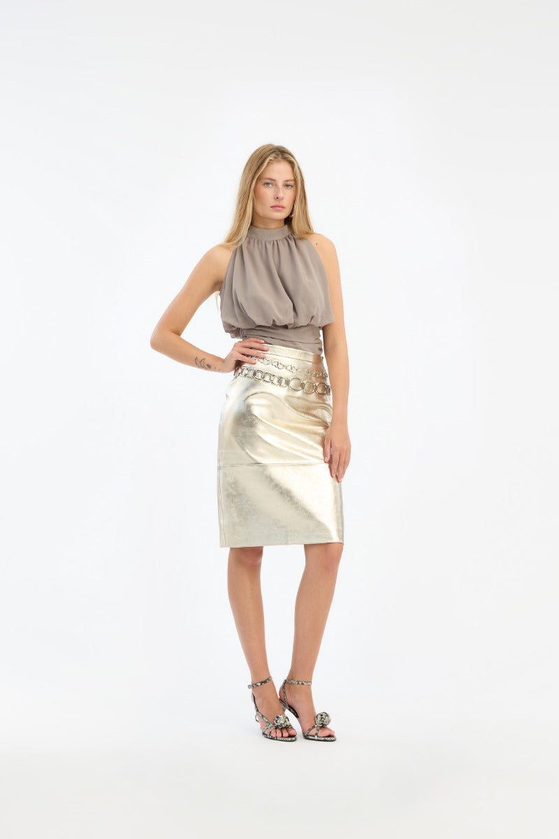 LEATHER MIDI PENCIL SKIRT