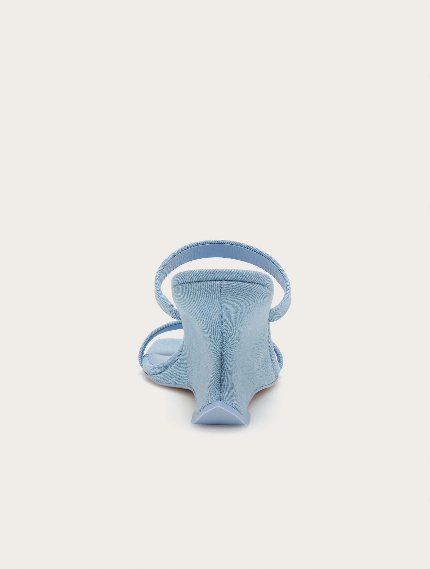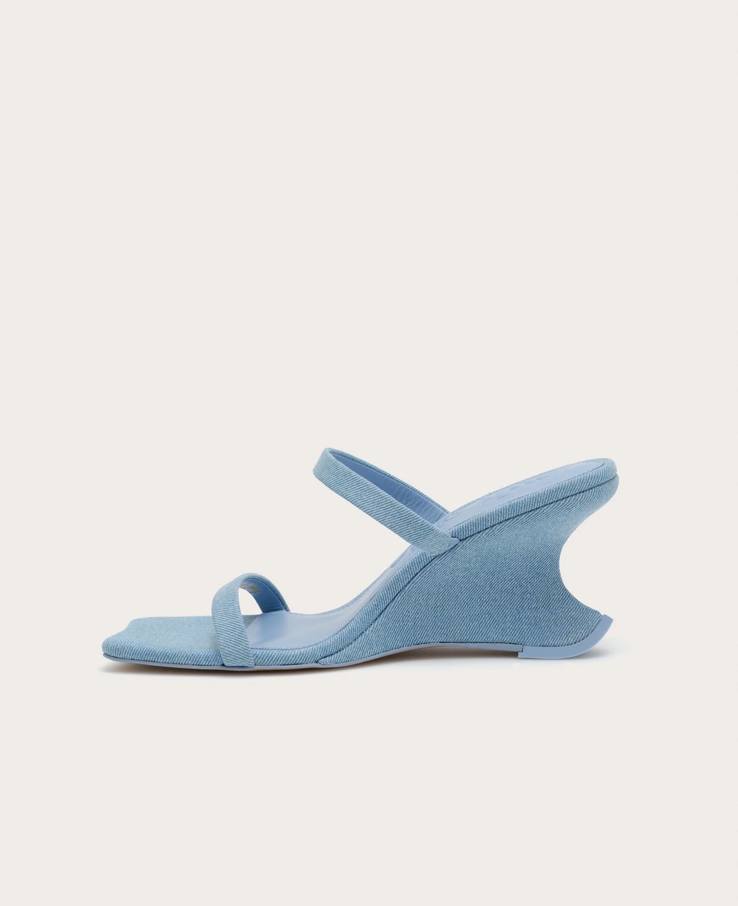 - A wedge sandal crafted from stretch denim in a vintage inspired wash