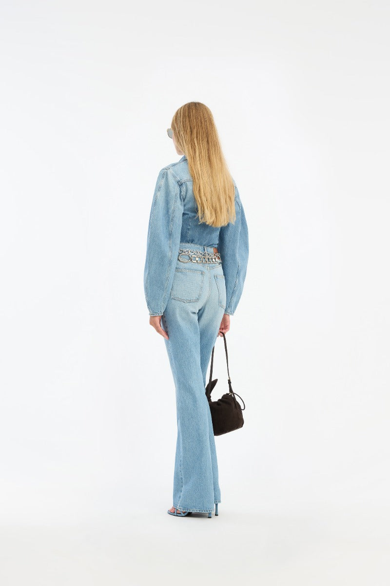 - The light blue denim wash creates a clean and timeless look.