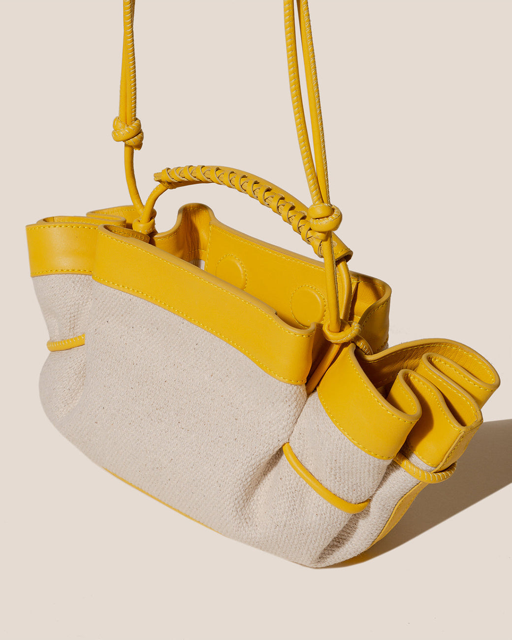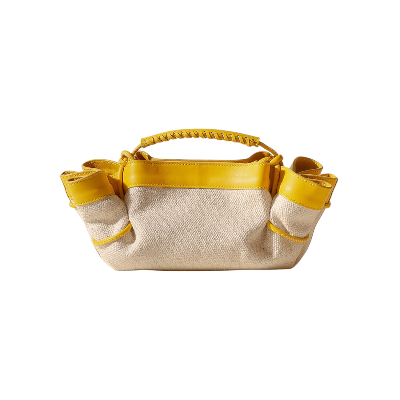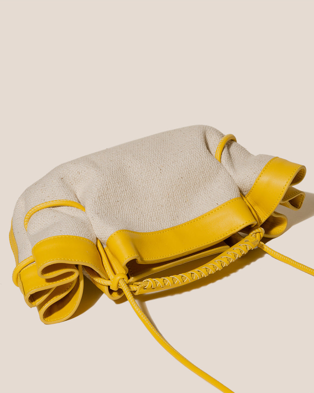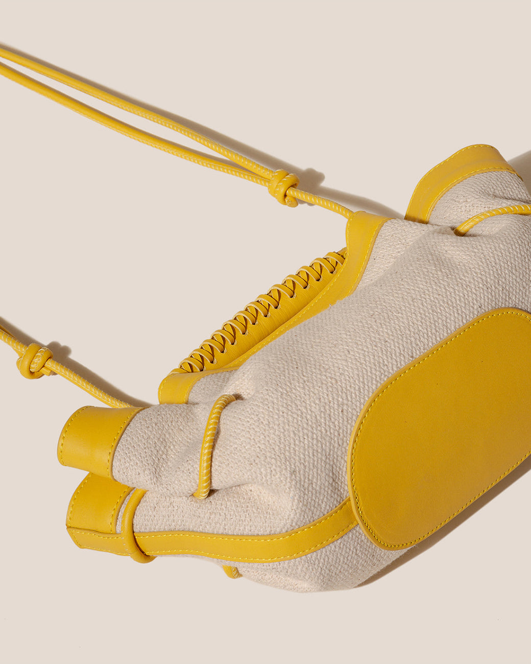 - Small pleated crossbody/handbag crafted in thick canvas and soft smooth calf leather