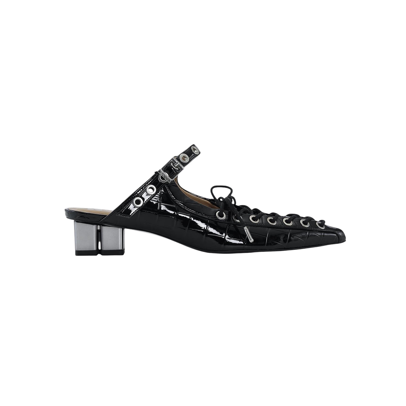 - Inspired by 1920s lace-up boots, black croco Lace-Up Mules combine nostalgia with a contemporary appeal