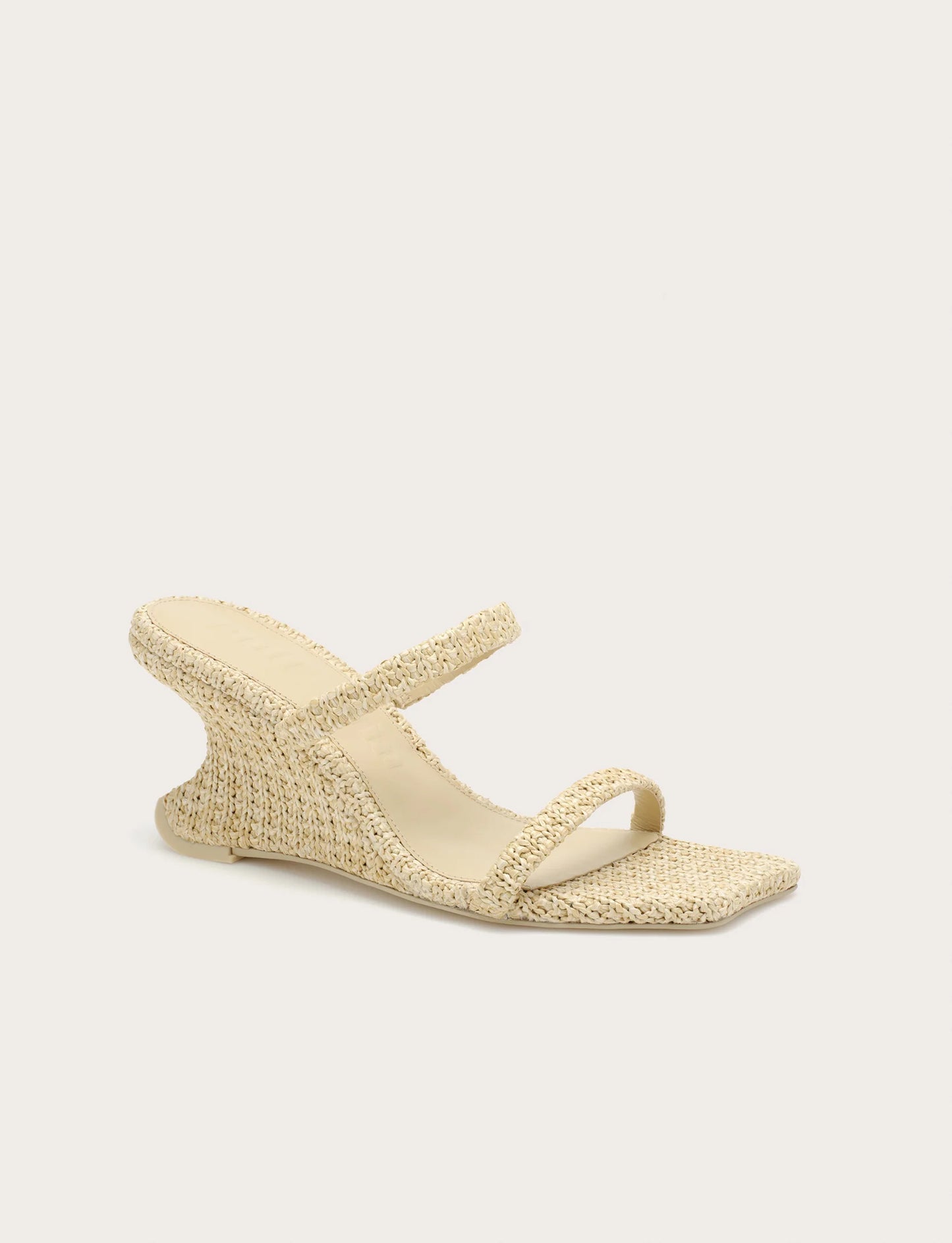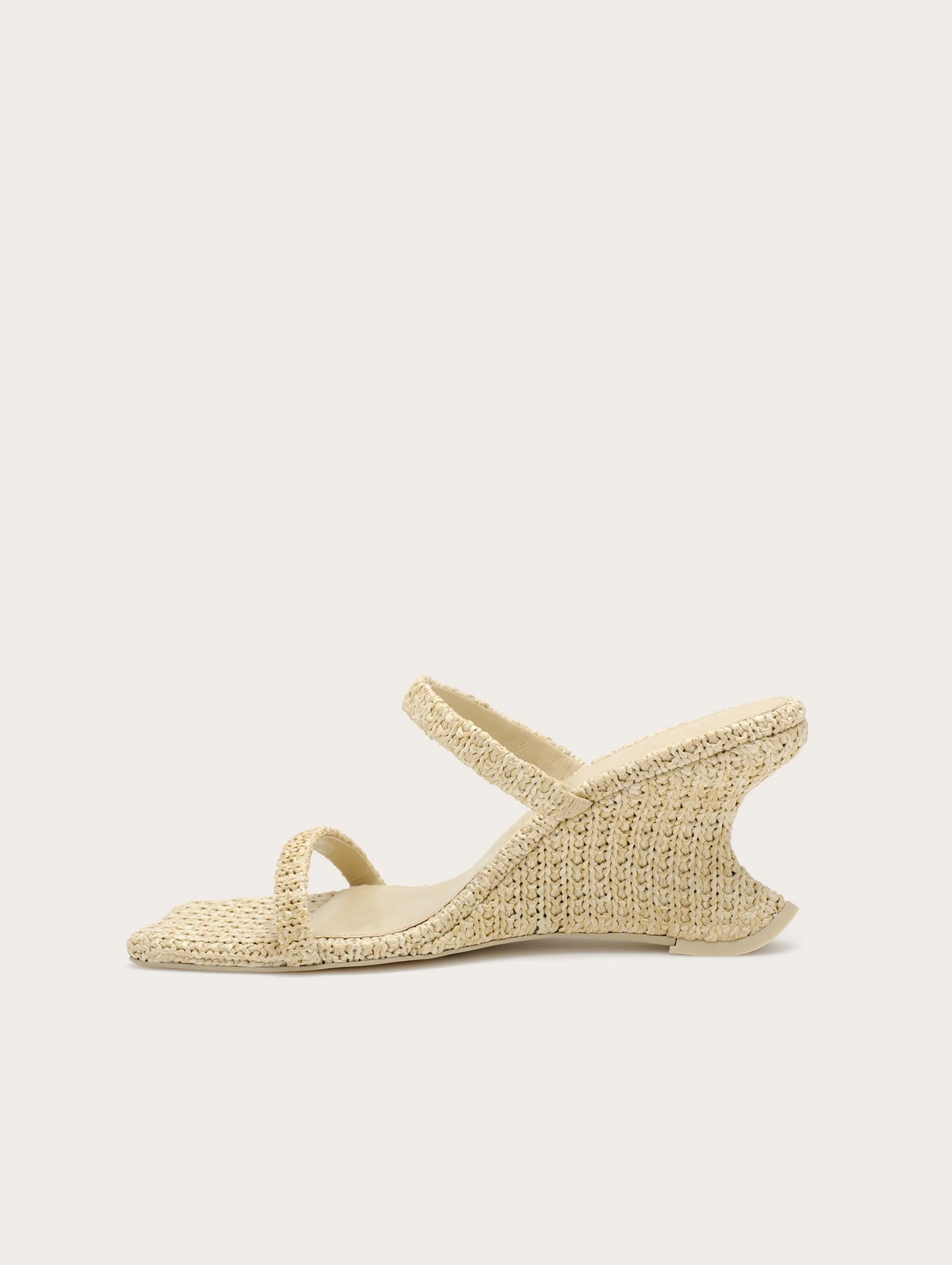 - A wedge sandal crafted from natural knit straw