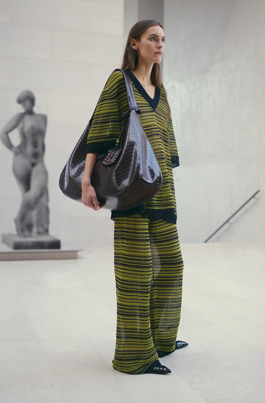 - Featuring a wide leg semi-sheer silhouette, striped textured knit, drawstring waistband, finished with a ribbed hemline